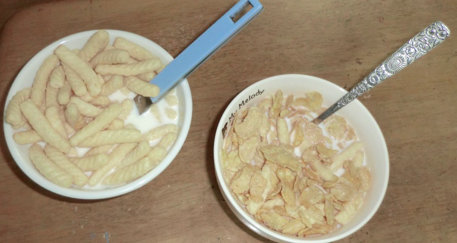 かっぱえびせんとコ-ンフレ-クで、更に牛乳を消費します。