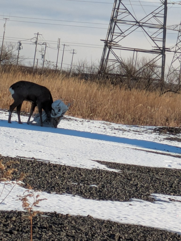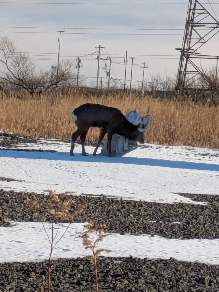 無残にも車と衝突をしたであろうと思われる お亡くなりになっている鹿と。