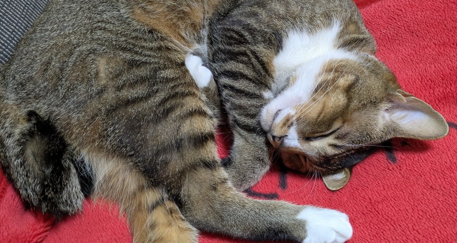 纏わりつく愛猫を踏まないように気遣いながら狭い部屋を歩き回る。